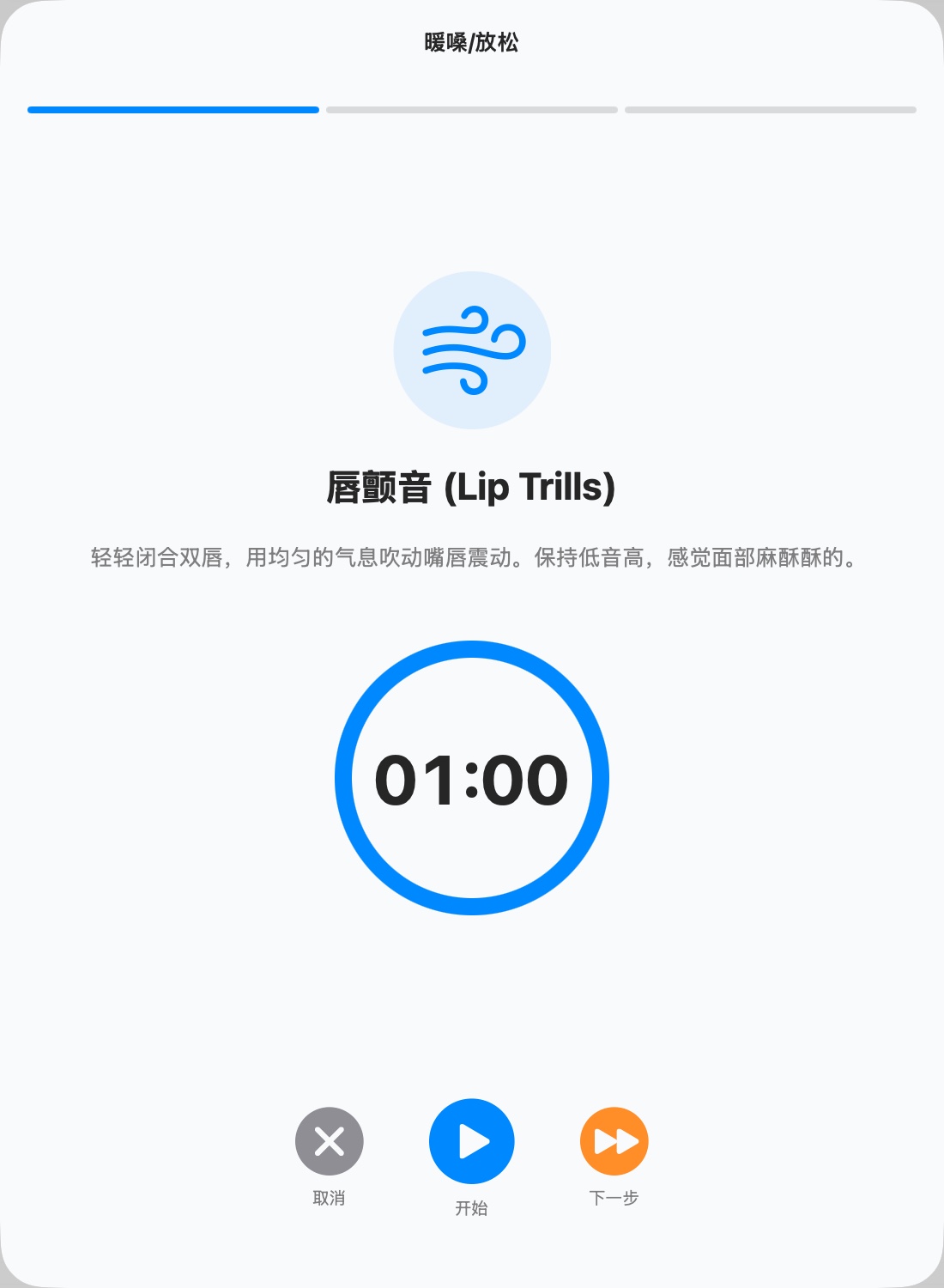 Guided vocal recovery session with three SOVT exercises for warming up before singing or cooling down after practice.